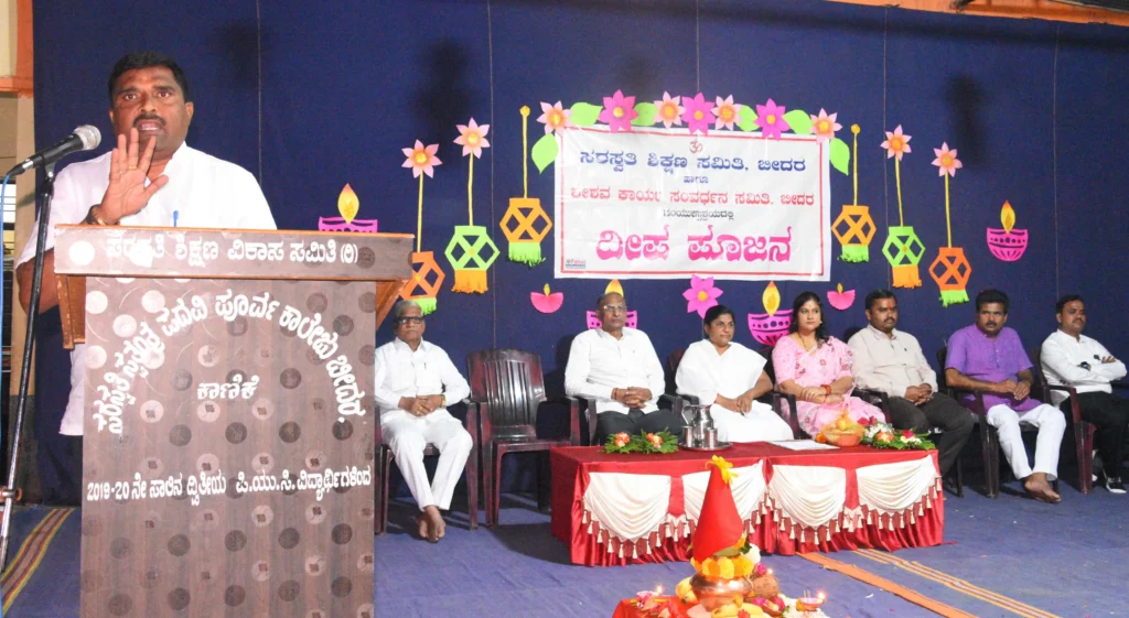 ಬೀದರ್ ನಗರದ ಸರಸ್ವತಿ ಹಿರಿಯ ಪ್ರಾಥಮಿಕ ಶಾಲೆಯಲ್ಲಿ ನಡೆದ ದೀಪ ಪೂಜನ ಕಾರ್ಯಕ್ರಮದಲ್ಲಿ ಸರಸ್ವತಿ ಶಿಕ್ಷಣ ವಿಕಾಸ ಸಮಿತಿ ಸಹಕಾರ್ಯದರ್ಶಿ ಪೀರಪ್ಪ ಔರಾದೆ ಮಾತನಾಡಿದರು.