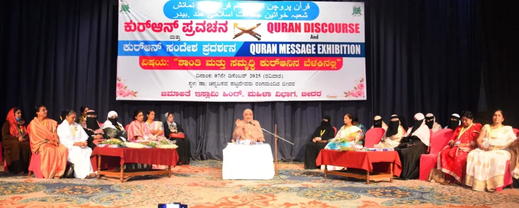ಬೀದರ್ ನಗರದ ಡಾ. ಚೆನ್ನಬಸವ ಪಟ್ಟದ್ದೇವರು ಜಿಲ್ಲಾ ರಂಗಮಂದಿರದಲ್ಲಿ ಶಾಂತಿ ಮತ್ತು ಸಮೃದ್ಧಿ ಕುರ್ಆನ್ ಬೆಳಕಿನಲ್ಲಿ ಕುರಿತು ಪ್ರವಚನ ನಡೆಯಿತು.